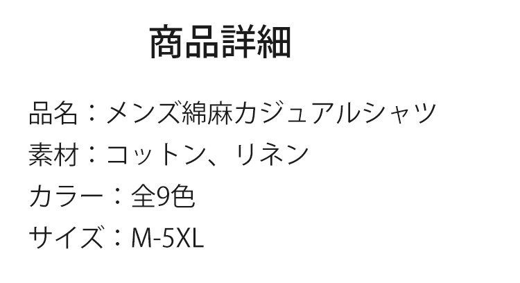 メンズ綿麻カジュアルシャツ
